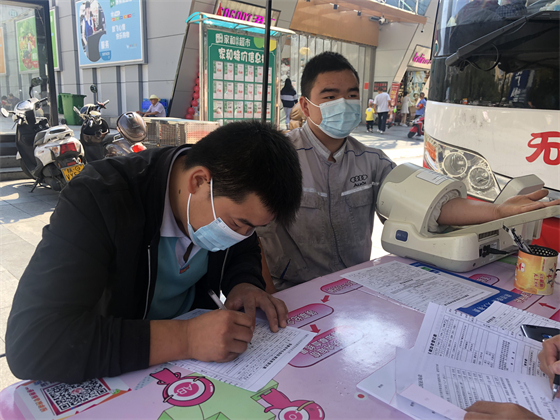 家在西安的劉盼與妻子分屬兩地工作,每逢節(jié)假日他都會開車來安康與妻子一起團(tuán)聚,中秋這天照例和妻子出門過二人世界的劉盼在獻(xiàn)血車前停下了腳步。“上次在西安獻(xiàn)血都好幾年前了,今天日子好,我去獻(xiàn)個血吧?”說完劉盼拉著妻子一起上了獻(xiàn)血車。等待初篩結(jié)果過程中,他一直拉著妻子的手說笑,夫妻倆顯得親密無間。檢驗結(jié)果合格后劉盼很爽快地要捐獻(xiàn)400毫升血液。