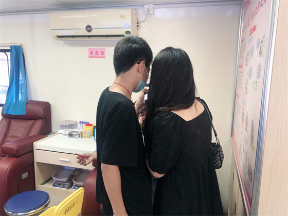 中秋節(jié)不僅街上熱鬧,獻(xiàn)血車上也熱鬧,鄧孟杰正坐在采血椅上獻(xiàn)血,他漂亮大方的女友站在旁邊跟他聊著晚上要吃什么,女友的弟弟坐在遠(yuǎn)一點(diǎn)的地方玩著手機(jī),女友的媽媽則坐在體檢桌前測量血壓,“一人獻(xiàn)血,三人陪同”的場景著實有點(diǎn)可愛,但鄧孟杰笑得十分開心,一直想獻(xiàn)血的他特別選了中秋這個日子,大概也是想和愛人親人一起分享這種美妙的人生體驗。鄧孟杰的女友拿起他的獻(xiàn)血證撒嬌到:“這次我們陪你,下次你也要陪我來獻(xiàn)血?!闭f完把手機(jī)塞給了一旁的弟弟,指揮他給自己和男友拍合照,一邊打趣弟弟拍照技術(shù)不好一邊把男友手里獻(xiàn)血證的位置調(diào)了又調(diào)。