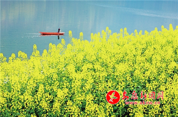 瀛湖的春天,立春很久才姍姍而來。春風拂過山間林木,樹木爆芽吐綠。起初是一樹一樹的鵝黃,帶著幾分詩意。沒幾天,便是翡翠般的新綠,煥發(fā)著勃勃的生機。藍天麗日下,一池湖水碧波萬頃,如一面巨大的鏡子鋪展在天地間。頭頂?shù)乃{天白云,四周的紅花綠樹,全都靜臥湖底。魚兒開始產子,孕育后代,來來往往的游船載來四面八方的游客,火了周邊的農家樂,鼓了村民的腰包。