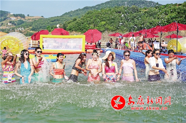 瀛湖的初夏,萬千變化。清晨,山和水還在夢中酣睡,一輪紅日從東面湖的盡頭沐浴而出,爬上山頭,霞光染紅了湖水,染紅了天空,湖面顯得更加清幽。傍晚,落日熔金,給群山鍍了一層金邊。此時,群鳥歸隱,群魚入眠。江風攪動湖水,湖面波光瀲滟,明麗動人。晚歸的漁民搖著一葉扁舟在寂靜的湖面上飄蕩,成為畫中最美的風景。習習涼風也吹散了白日的暑熱,舒適愜意,是休閑避暑的好去處。若遇雨天,天地間扯起絲絲銀線,水天一色,如煙如霧,籠罩在瀛湖上空。那若有若無輕煙一樣的雨霧輕盈地飄蕩在湖面上、群山間,翠屏山莊上的亭臺水榭、湖心碧螺島上的螺峰塔,全都沐浴在水蒙蒙的輕紗中,如夢似幻?!拔魅角鞍橈w,桃花流水鱖魚肥。青箬笠,綠蓑衣,斜風細雨不須歸。”此時,湖里的魚兒成群結隊地游出水面透氣,正是釣魚的最佳時機,湖邊不少垂釣愛好者正興致勃勃地冒雨釣魚,完全不顧雨已打濕了衣服。湖中,一葉葉漁舟和游船在雨中漫游,幽幽絲竹之聲從游船中飄出,像游走在煙雨迷蒙的江南水鄉(xiāng)。