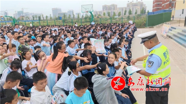 活動中,大隊民警結(jié)合轄區(qū)實際情況,首先通報了暑假期間全區(qū)道路交通安全,特別是涉及中小學(xué)生的典型事故案例,以身邊的事故教育身邊的人,以案說法、以案為鑒,希望同學(xué)們從中汲取深刻教訓(xùn),遠離交通事故危害。其次,民警針對中小學(xué)生上下學(xué)出行特點,以“守法規(guī)知禮讓、安全文明出行”為主題,通過擺放宣傳展板、發(fā)放宣傳資料、以及互動問答等形式,圍繞學(xué)生正確走路、文明乘車、安全騎車幾個方面,向同學(xué)們宣傳講解日常交通安全常識,生活中出行應(yīng)當(dāng)注意的行為規(guī)范,發(fā)生交通事故后如何求助,教育引導(dǎo)同學(xué)們認真遵守道路交通安全法規(guī),牢固樹立交通安全文明意識,做到知危險會避險,守法規(guī)知禮讓,真正提高安全防范意識和自我保護能力。