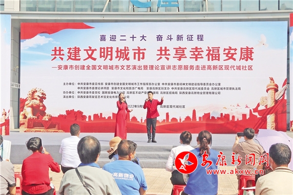 9月9日,一場以“共建文明城市,共享幸福安康”為主題的文藝演出和理論宣講活動(dòng)在高新現(xiàn)代城社區(qū)舉行。整場活動(dòng),除了有群眾喜聞樂見的文藝節(jié)目,還設(shè)置有創(chuàng)建知識問答互動(dòng)和創(chuàng)文知識專題宣講?,F(xiàn)場,志愿者們還熱情地向群眾發(fā)放印有創(chuàng)文內(nèi)容的宣傳冊、涼扇、垃圾袋等,大家紛紛贊揚(yáng):“形式生動(dòng)活潑,宣傳入腦入心!”