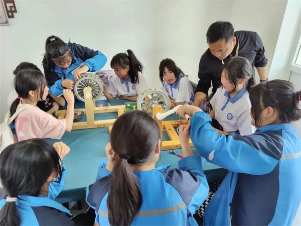 在這里可以體驗(yàn)的活動(dòng)有:一蠶繭手工DIY,孩子們可以充分發(fā)揮自己的想象自己創(chuàng)作;二是剝繭抽絲課堂,孩子們可以親手體驗(yàn)繅絲的神奇,將一根根蠶絲擰成一股繩感受古人的聰明智慧;三是微觀世界課堂,讓孩子們學(xué)習(xí)顯微鏡的構(gòu)造與使用,體驗(yàn)微觀世界的神奇,親自動(dòng)手制作桑葉標(biāo)本,觀察并記錄了顯微鏡下桑葉的形態(tài)特征,最后還可以近距離觀察蠶寶寶,沉浸式體驗(yàn)蠶桑教育文化。
