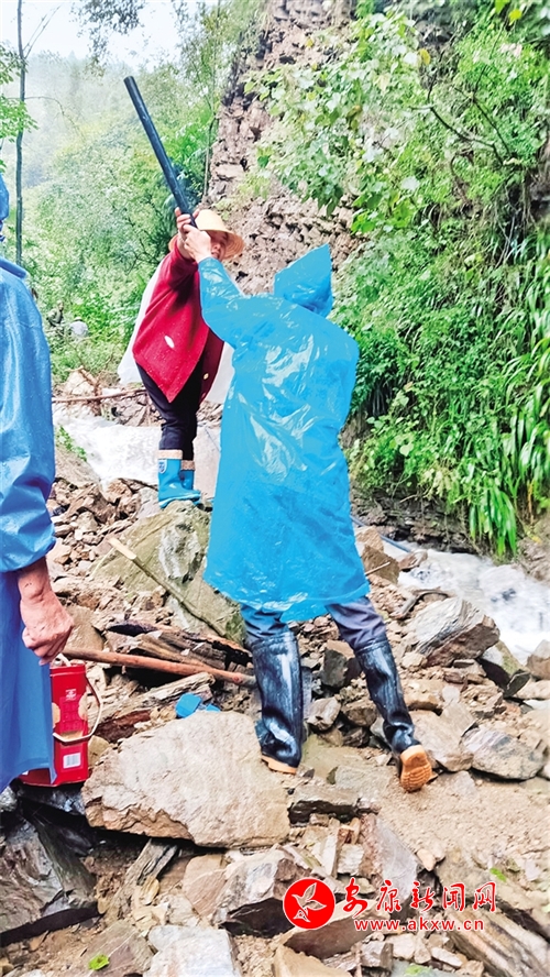 10月5日,紫陽(yáng)縣高橋鎮(zhèn)雙龍村村“兩委”干部和村級(jí)水管員堅(jiān)守崗位,排查搶修飲水管道。胡波 田自國(guó) 攝