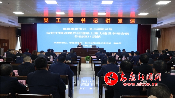 本網(wǎng)訊(通訊員 李祖明)11月9日,市委副書記、常務(wù)副市長(zhǎng)、恒口示范區(qū)黨工委書記高晶華以“感悟思想偉力、爭(zhēng)當(dāng)創(chuàng)新示范,為在中國式現(xiàn)代化道路上聚力建設(shè)幸福安康作出恒口貢獻(xiàn)”為題,為恒口示范區(qū)黨員干部講授主題教育專題黨課。