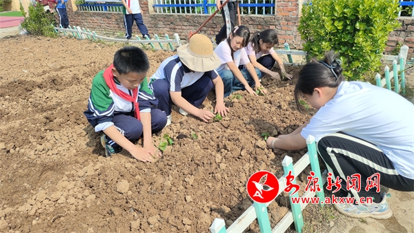 同學(xué)們?cè)谥笇?dǎo)老師的帶領(lǐng)下,帶著農(nóng)具,化身“小農(nóng)人”,挽起袖子,揮動(dòng)鋤頭,挖開泥土,平整土地,拔出雜草,植下蔬菜瓜果,個(gè)個(gè)忙得不亦樂乎。孩子們?cè)凇疤镩g”揮灑著汗水,在實(shí)踐中體驗(yàn)農(nóng)耕文化的魅力,感受辛勤耕耘的快樂,培養(yǎng)熱愛勞動(dòng)的精神。通過春季勞動(dòng)教育種植實(shí)踐活動(dòng),學(xué)生們從課堂走進(jìn)自然,不僅培養(yǎng)了學(xué)生的勞動(dòng)技能,還為他們植入了生命教育。