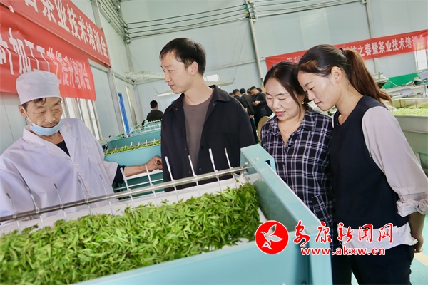 高翔“接單”后,一邊聯(lián)合鎮(zhèn)農(nóng)綜站同縣上的茶技中心對(duì)接,聘請(qǐng)專家到鎮(zhèn)指導(dǎo),一邊積極向鎮(zhèn)上的茶飲企業(yè)和茶農(nóng)宣傳,組織大家前來(lái)聽講座、現(xiàn)場(chǎng)觀摩,有了高翔的“搭橋”,正陽(yáng)鎮(zhèn)茶技培訓(xùn)如期順利舉行,活動(dòng)當(dāng)天,茶葉加工場(chǎng)里熱鬧非凡,30余名茶企負(fù)責(zé)人和茶農(nóng)圍著專家現(xiàn)場(chǎng)提問(wèn),茶技中心專家親自示范、現(xiàn)場(chǎng)解答,大家聚精會(huì)神、虛心請(qǐng)教,通過(guò)系統(tǒng)的理論學(xué)習(xí)和動(dòng)手實(shí)踐,進(jìn)一步掌握和提升了茶園管護(hù)和茶葉加工的技術(shù)。