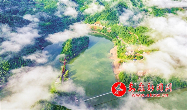 穿過(guò)密林,移步水邊,小島早已與一汪碧水融為一體,綠瑩瑩的水環(huán)繞著小島,島以水為鏡,水以島為景。此時(shí)的小島猶如一位漂亮的村姑,靜靜地欣賞著水中的倩影。汪汪碧水、陣陣?guó)B鳴、悠悠藍(lán)天,讓人不自覺地?cái)柯暺翚?,生怕打亂這寧?kù)o風(fēng)景,那就只好用心去感受欣賞了。