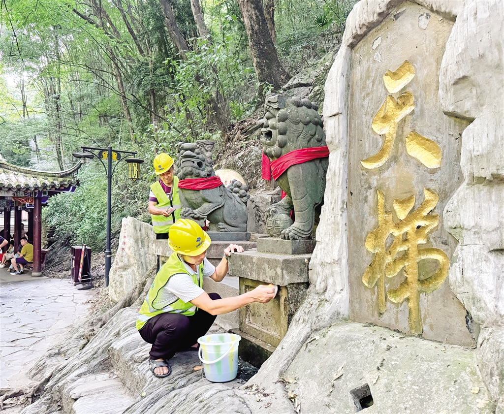 8月22日,工作人員正在香溪洞開(kāi)展景區(qū)設(shè)施清理工作。據(jù)施工現(xiàn)場(chǎng)負(fù)責(zé)人介紹,香溪洞風(fēng)景名勝區(qū)管理局將會(huì)對(duì)供水、供電、照明等設(shè)施進(jìn)行升級(jí)改造。(鄒一銘 攝)