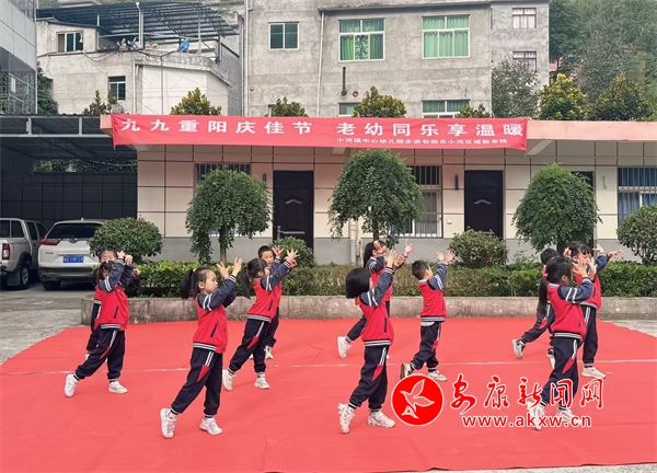 為弘揚(yáng)中華民族尊老敬老的傳統(tǒng)美德,培養(yǎng)幼兒尊老、敬老、助老、愛(ài)老的美好品質(zhì),在重陽(yáng)節(jié)來(lái)臨之際,10月10日,旬陽(yáng)市小河鎮(zhèn)中心幼兒園組織孩子們,走進(jìn)小河區(qū)域敬老院,開展“九九重陽(yáng)慶佳節(jié),老幼同樂(lè)享溫暖”實(shí)踐活動(dòng)?;顒?dòng)中,孩子們?yōu)闋敔斈棠太I(xiàn)上了精心準(zhǔn)備的歌舞表演,老人們和孩子們一起系上大紅綢,扭起秧歌來(lái),大家一起進(jìn)行了有趣的游戲。孩子們用稚嫩的動(dòng)作,甜美的笑容,給老人們平淡的生活里帶去了歡樂(lè)。(通訊員 劉曉玲 李冬梅)?