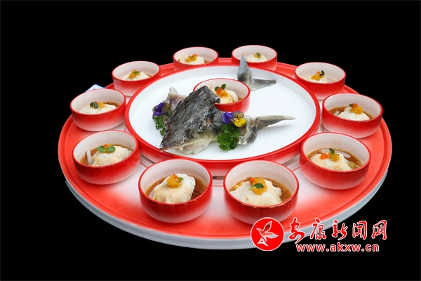 “陜南淡水魚餐飲暨‘贛義鑫杯’烹飪技能大賽”是張顯峰走出去學(xué)習(xí)交流檢驗(yàn)自己菜品研究成果的平臺。在準(zhǔn)備本次比賽菜品時(shí),他選用了紫陽縣最好的食材“富硒鱘魚”、花鰱魚,土黑豬五花肉及羊肚菌等蔬菜,精心制作了兩道菜品,第一道菜品是紫陽茶香宴中的主菜——茶香鱘龍。這道菜擺盤高雅,肉質(zhì)細(xì)膩,口味鮮美,茶香與淡水魚的完美結(jié)合,讓人仿佛置身于清新的茶山之間,品味著大自然的饋贈。