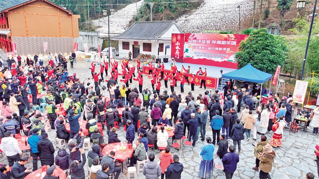 據了解,為了準備此次庖湯宴,去年12月底,石門鎮(zhèn)總投資120余萬元開始進行橫溪古鎮(zhèn)舊房改造提升項目,著力打造“古鎮(zhèn)庖湯宴”品牌。經過項目改造,古鎮(zhèn)完成全面升級。不僅如此,石門鎮(zhèn)政府還不斷通過“線上+線下”的宣傳方式,提升當地旅游業(yè)影響力,積極制作旅游宣傳視頻,此次活動帶動引流2000人次。(柯明宇 攝)