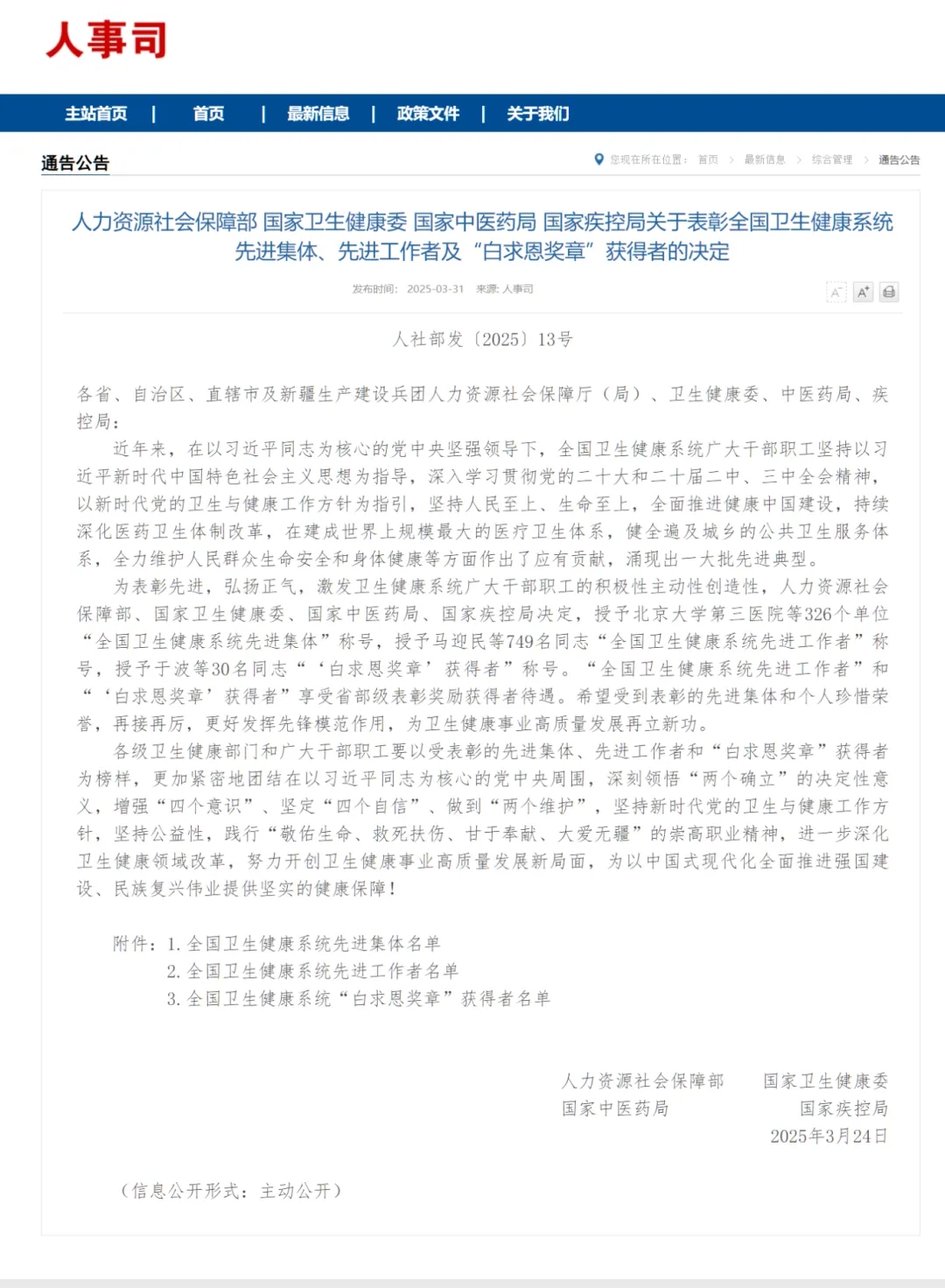 近日,人力資源社會(huì)保障部、 國家衛(wèi)生健康委等四部委發(fā)布關(guān)于表彰全國衛(wèi)生健康系統(tǒng)先進(jìn)集體、先進(jìn)工作者及“白求恩獎(jiǎng)?wù)隆鲍@得者的決定,我市1個(gè)集體、1人分別獲得全國衛(wèi)生健康系統(tǒng)先進(jìn)集體、全國衛(wèi)生健康系統(tǒng)先進(jìn)工作者榮譽(yù)稱號(hào)。