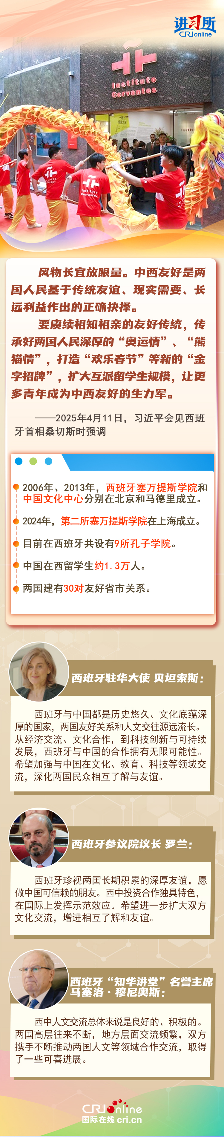 今年是中西全面戰(zhàn)略伙伴關(guān)系建立20周年,也是中歐建交50周年。多年來,中西兩國領(lǐng)導(dǎo)人保持密切互動(dòng),秉持互尊互信、互利共贏精神,兩國在深化貿(mào)易、投資、科技創(chuàng)新、綠色能源等領(lǐng)域取得豐富合作成果,雙邊關(guān)系走在中國同歐洲國家關(guān)系前列。在西班牙人士眼中,良好的對華關(guān)系對西班牙、歐洲和世界具有重要意義,將會(huì)為兩國人民帶來更多實(shí)實(shí)在在的福祉,也將共同創(chuàng)造更美好的未來。