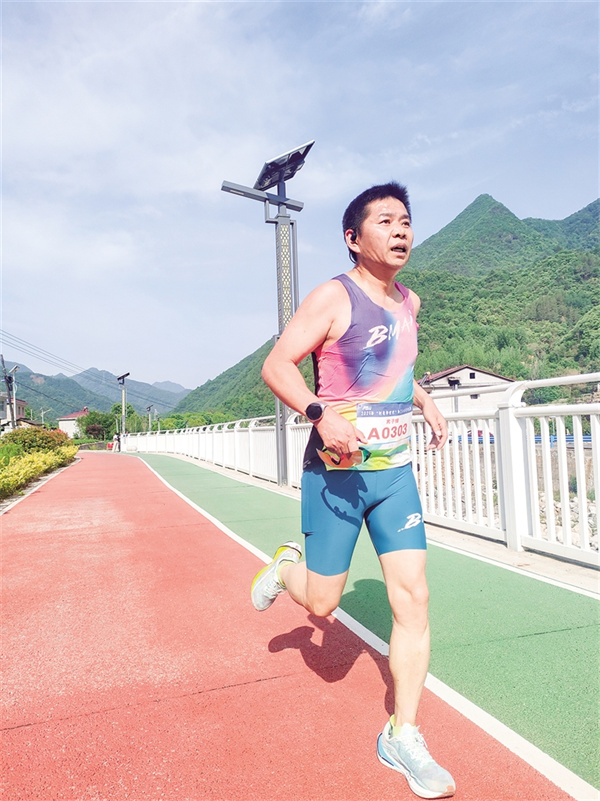 沿途的補(bǔ)給站早已經(jīng)準(zhǔn)備就緒,啦啦隊(duì)舉著“加油”的標(biāo)語牌揮舞,沿途的村民不分男女老少紛紛為選手鼓勁。比賽中,臨近退休卻堅(jiān)持跑步10余年的“老將”肖軍鼓勵(lì)大家:“一定要穩(wěn)住節(jié)奏,后半程才不會(huì)掉速!”大顆大顆的汗水在他臉頰流淌,卻掩不住他眼中躍動(dòng)的光芒。