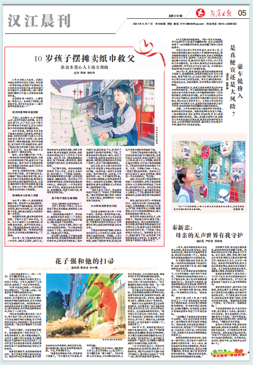 (2024年5月7日安康日?qǐng)?bào)05版“10歲孩子擺攤賣(mài)紙巾救父 獲眾多愛(ài)心人士接力幫助”)