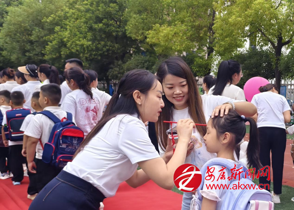 走紅毯環(huán)節(jié)將氛圍推向高潮。班主任帶領(lǐng)新生與家長手牽手緩緩前行,周圍的歡呼聲此起彼伏,孩子們在這份熱鬧中,真切感受到“成為小學生”的榮譽感?!懊6Y”環(huán)節(jié)巧思滿滿,8種寓意吉祥的物品整齊擺放,孩子們懷著好奇伸手觸摸,在指尖的互動中,收下滿含期許的祝福。
