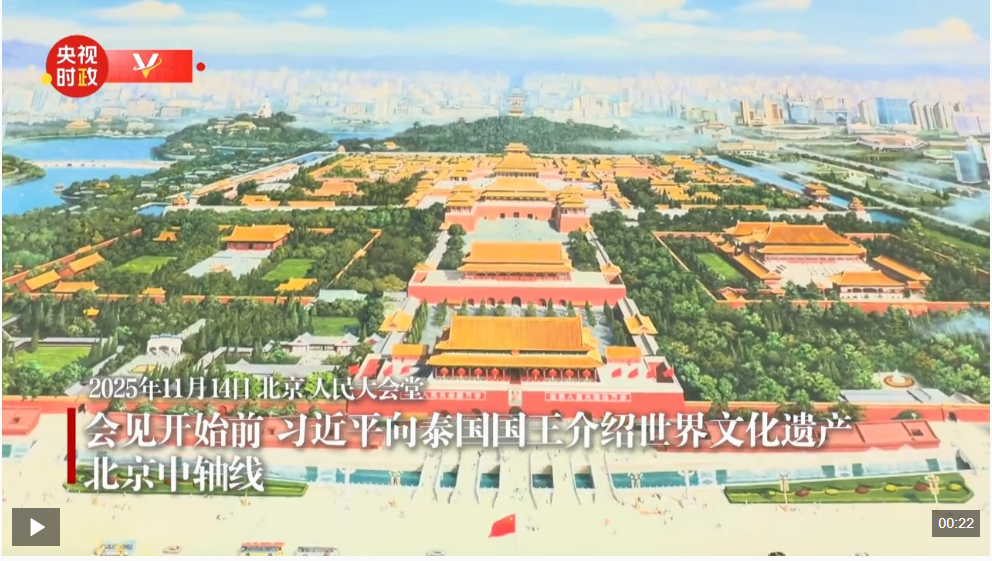 會(huì)見開始前,習(xí)近平向泰國(guó)國(guó)王介紹世界文化遺產(chǎn)——北京中軸線。