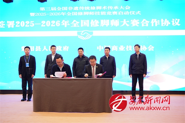 簽約與啟動(dòng)儀式上,紫陽縣人民政府與中國商業(yè)技師協(xié)會(huì)簽署2025—2026年全國修腳師大賽合作協(xié)議,并共同啟動(dòng)大賽。紫陽縣人社局與揚(yáng)州市陸琴腳藝職業(yè)培訓(xùn)學(xué)校簽訂修腳技能培訓(xùn)協(xié)議;現(xiàn)場(chǎng)還舉行了會(huì)旗交接儀式,確定了下一屆承辦單位。