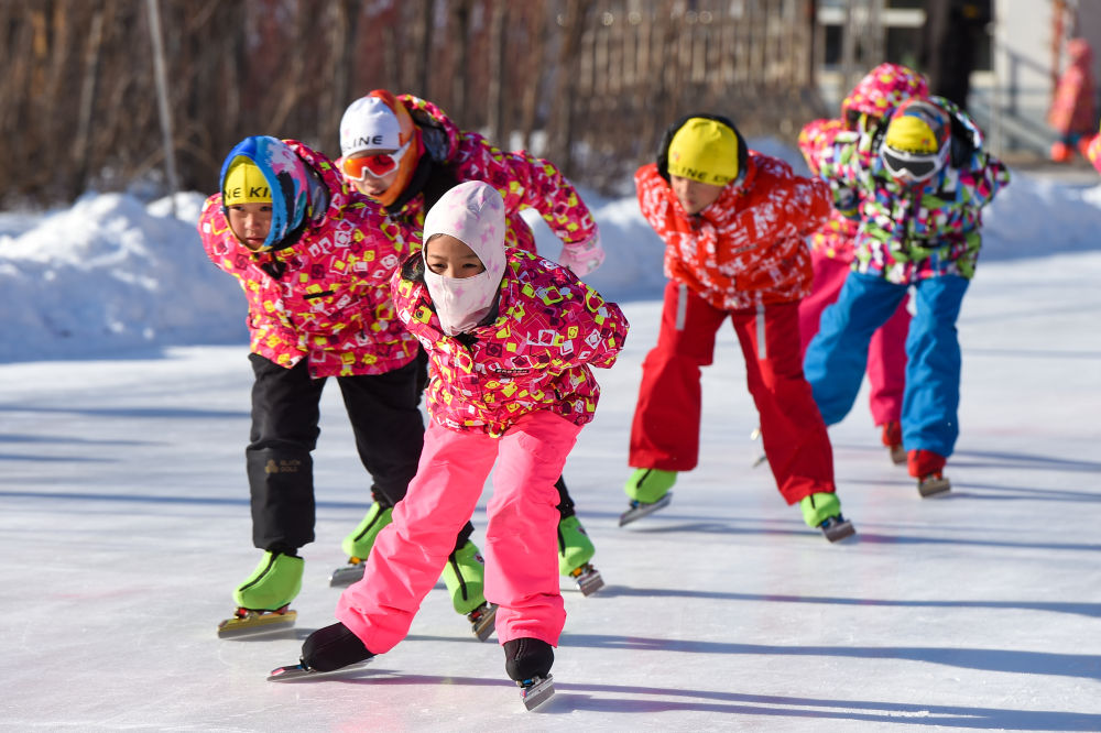 ?? 1月13日,在吉林省四平市六馬路小學,學生們在冰場上滑行。新華社記者 張楠 攝