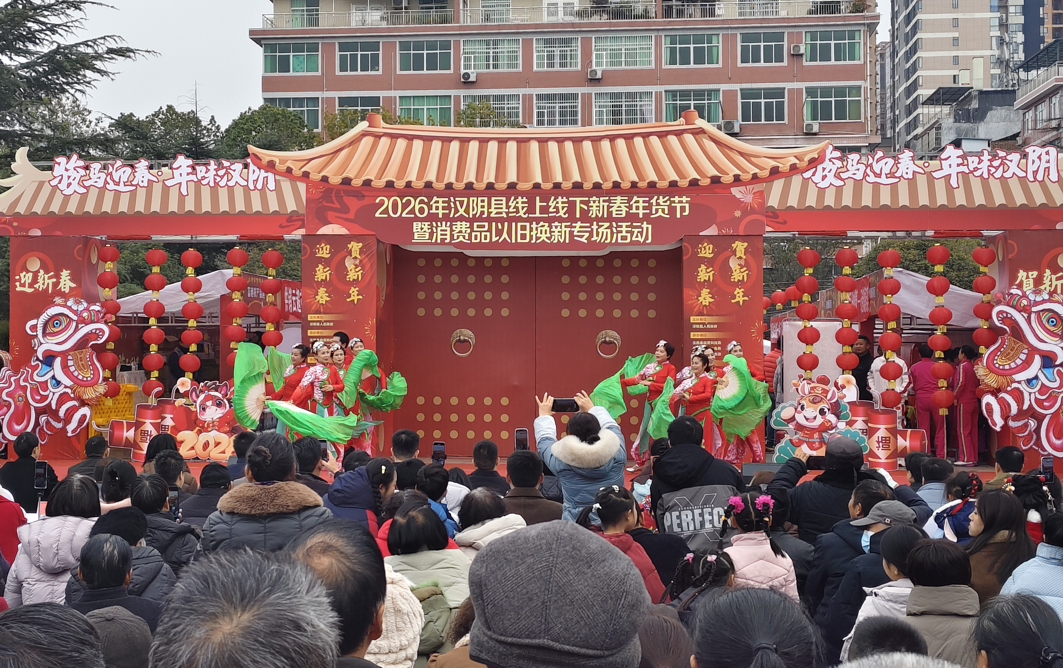 1月30日,漢陰縣舉行2026年線上線下新春年貨節(jié)暨消費品以舊換新專場活動,吸引了70余家參展商參加?;顒蝇F(xiàn)場,游客們欣賞文藝演出、品嘗美食、采購年貨,讓冬日里的縣城變成了歡樂的海洋。