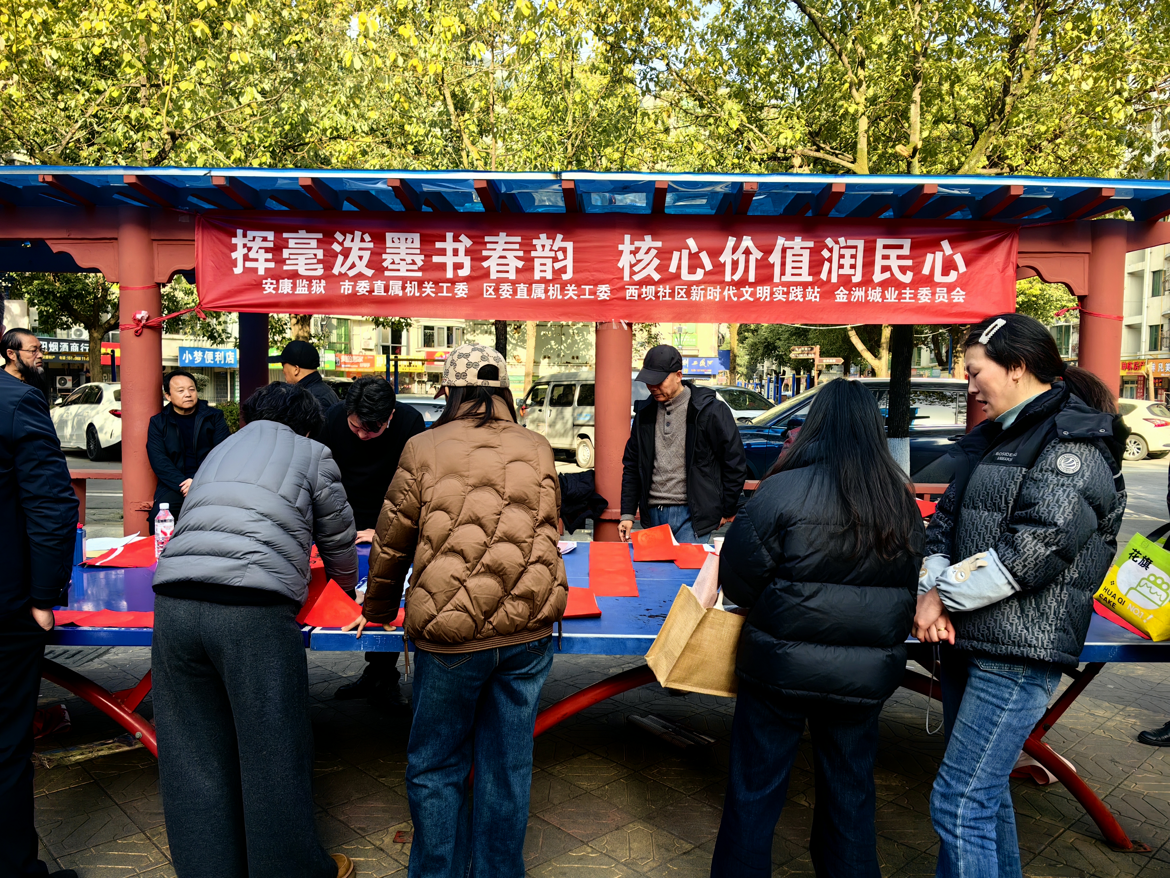 2月2日下午,安康監(jiān)獄、市委直屬機(jī)關(guān)工委、區(qū)委直屬機(jī)關(guān)工委、漢濱區(qū)西壩社區(qū)新時代文明實踐站組織市區(qū)書法家在金洲城小區(qū)為群眾義寫春聯(lián)。 鄭時根 攝