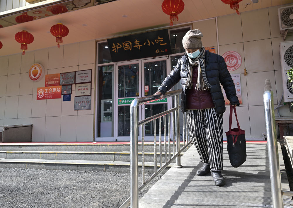 73歲的社區(qū)居民走在專為老年人和行動不便者設(shè)置的緩步斜坡步道上(2月10日攝)。