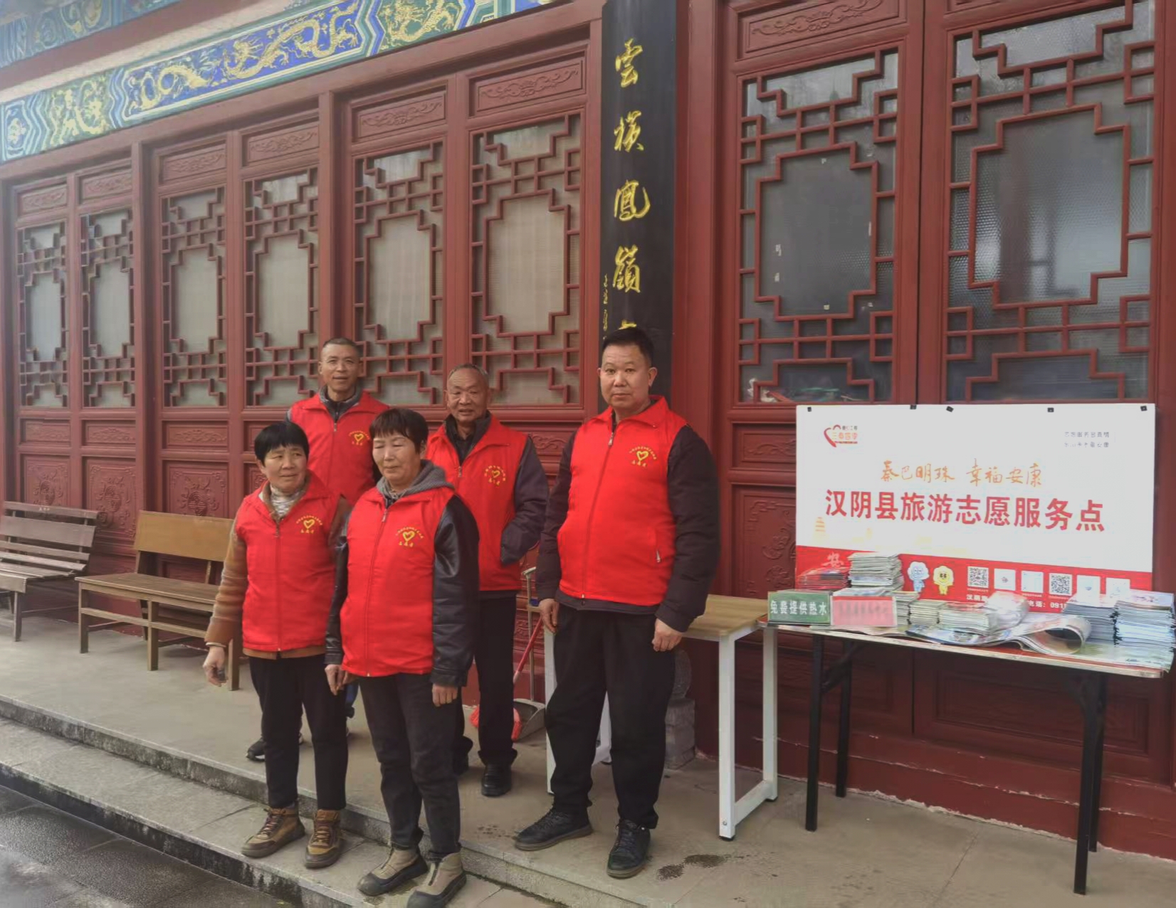 春節(jié)期間,志愿者在漢陰縣龍崗公園堅守崗位。他們放棄與家人團聚的時光,用行動詮釋奉獻與擔(dān)當,守護游客的平安與歡樂。王磊 攝
