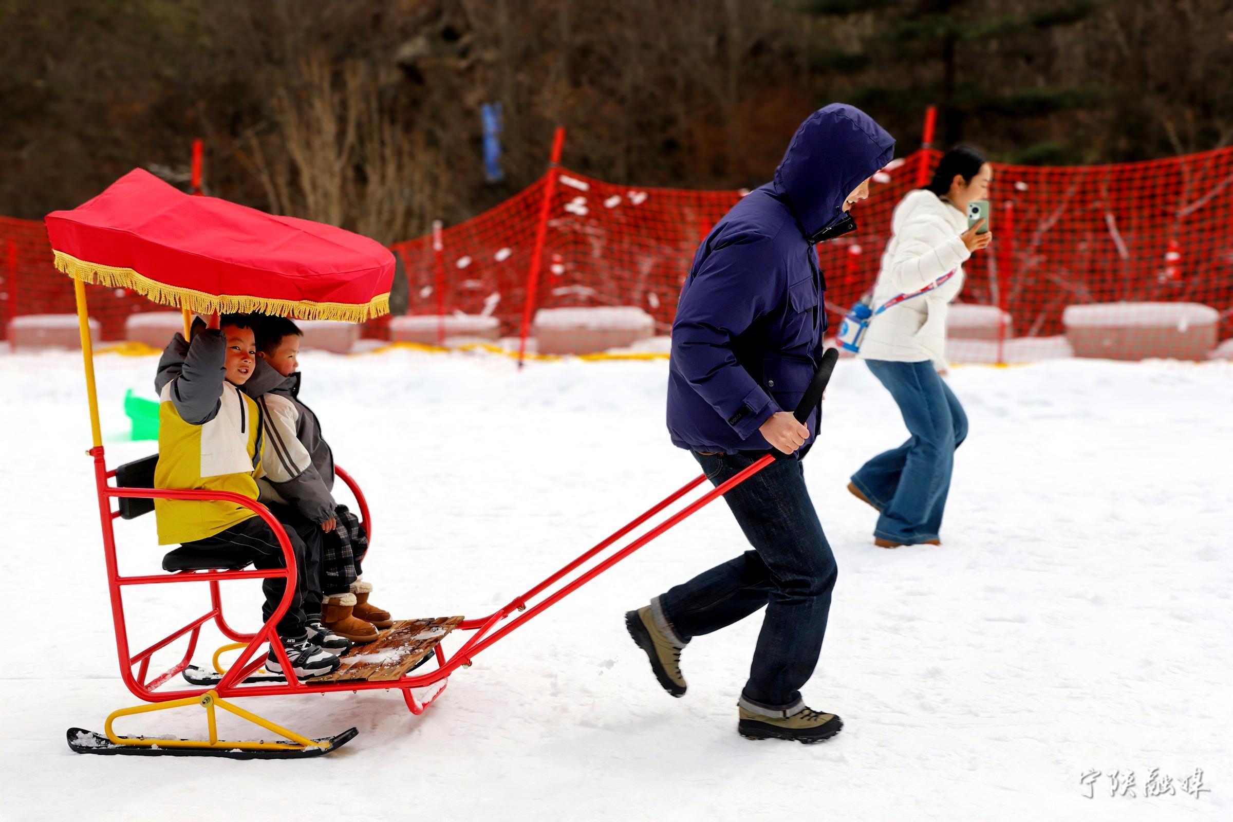 2月18日,游人在寧陜縣皇冠雪鄉(xiāng)體驗冰雪娛樂項目。當日皇冠雪鄉(xiāng)接待游客1813人次。黃太萱 攝
