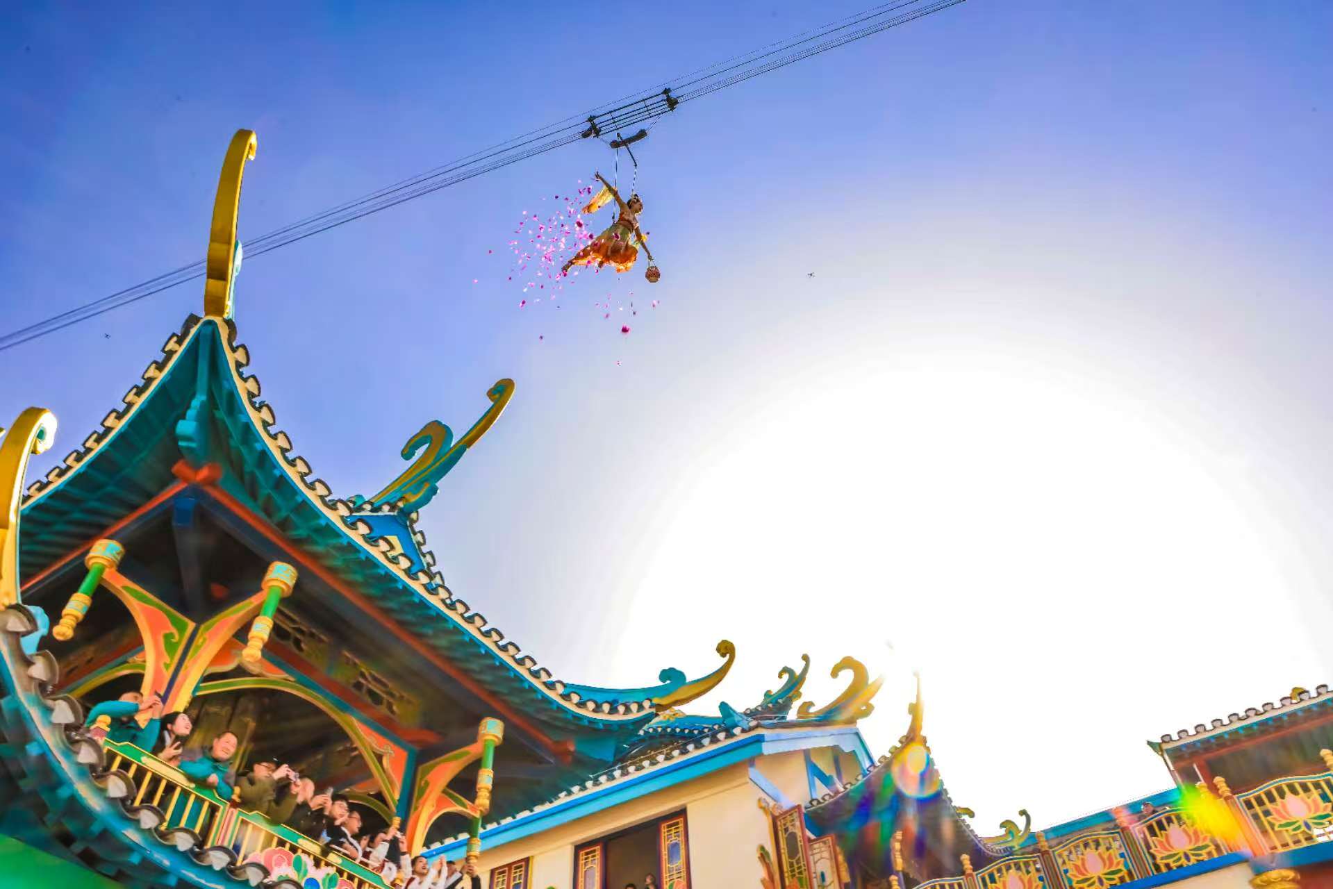 春節(jié)期間,瀛湖漢水街文旅影視基地?zé)狒[非凡。圖為游客們欣賞基地精心準(zhǔn)備的表演。張忠 攝