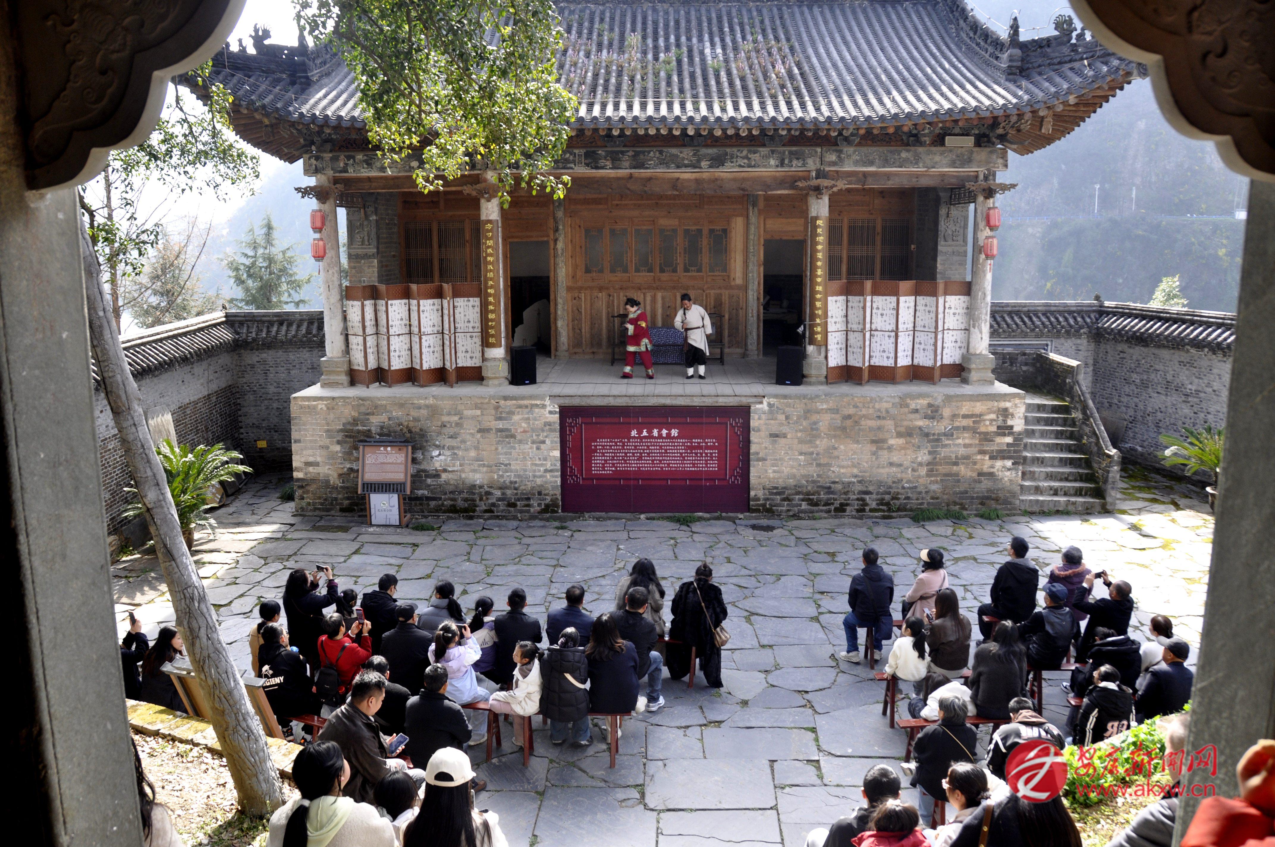為豐富群眾的精神文化生活,2月22日,紫陽縣在北五省會(huì)館開展了主題文化活動(dòng)。圖為歌劇《王二嫁嫂》專場(chǎng)演出,吸引眾多游客駐足欣賞。彭召伍 攝