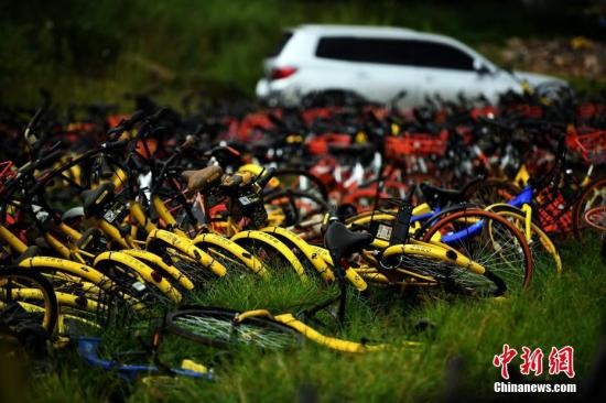 9月9日,現(xiàn)場堆積如山的共享單車。中新社記者 李進(jìn)紅 攝