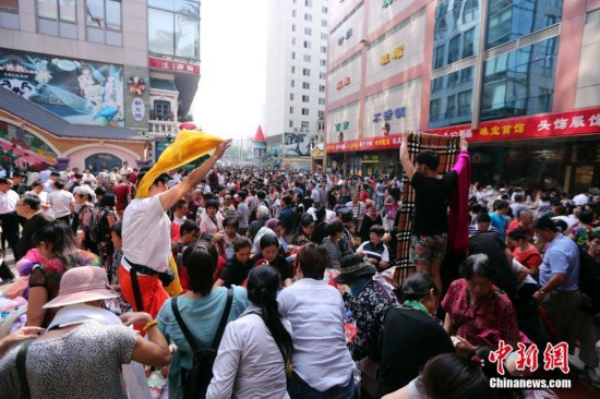 9月15日,幾位來(lái)自斯里蘭卡的游客慕名前來(lái)天意選購(gòu)商品。當(dāng)日,自1992年開(kāi)業(yè)至今的北京天意市場(chǎng)迎來(lái)其在北京西城阜外大街營(yíng)業(yè)的最后一日,商家趁機(jī)“瘋狂甩貨”,大批北京民眾也紛至沓來(lái)。這里曾是北京著名的小商品商城,聚集了數(shù)千家商戶(hù)。為疏解北京非首都功能,天意商城將于本月16日關(guān)門(mén)停業(yè)。中新社記者 崔楠 攝