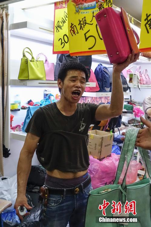 9月15日,一商家舉起商品大聲叫賣(mài)。當(dāng)日,自1992年開(kāi)業(yè)至今的北京天意市場(chǎng)迎來(lái)其在北京西城阜外大街營(yíng)業(yè)的最后一日,商家趁機(jī)“瘋狂甩貨”,大批北京民眾也紛至沓來(lái)。這里曾是北京著名的小商品商城,聚集了數(shù)千家商戶(hù)。為疏解北京非首都功能,天意商城將于本月16日關(guān)門(mén)停業(yè)。中新社記者 崔楠 攝