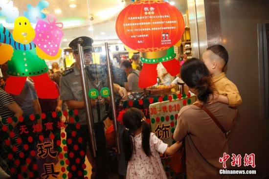 9月15日,天意商戶(hù)舉起二維碼方便顧客掃碼支付,以新式支付方式助力傳統(tǒng)零售。當(dāng)日,自1992年開(kāi)業(yè)至今的北京天意市場(chǎng)迎來(lái)其在北京西城阜外大街營(yíng)業(yè)的最后一日,商家趁機(jī)“瘋狂甩貨”,大批北京民眾也紛至沓來(lái)。這里曾是北京著名的小商品商城,聚集了數(shù)千家商戶(hù)。為疏解北京非首都功能,天意商城將于本月16日關(guān)門(mén)停業(yè)。中新社記者 崔楠 攝