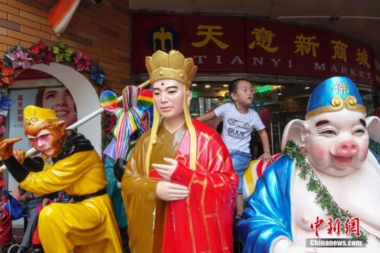 9月15日,一孩童坐在天意門(mén)前西游記師徒雕像上遠(yuǎn)眺。當(dāng)日,自1992年開(kāi)業(yè)至今的北京天意市場(chǎng)迎來(lái)其在北京西城阜外大街營(yíng)業(yè)的最后一日,商家趁機(jī)“瘋狂甩貨”,大批北京民眾也紛至沓來(lái)。這里曾是北京著名的小商品商城,聚集了數(shù)千家商戶(hù)。為疏解北京非首都功能,天意商城將于本月16日關(guān)門(mén)停業(yè)。中新社記者 崔楠 攝