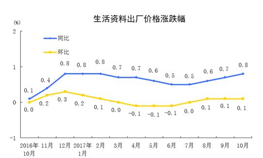 人民網(wǎng)北京11月9日電(李楠樺)國(guó)家統(tǒng)計(jì)局官方網(wǎng)站公布數(shù)據(jù)顯示,2017年10月份,全國(guó)工業(yè)生產(chǎn)者出廠價(jià)格同比上漲6.9%,環(huán)比上漲0.7%。工業(yè)生產(chǎn)者購進(jìn)價(jià)格同比上漲8.4%,環(huán)比上漲0.9%。1-10月平均,工業(yè)生產(chǎn)者出廠價(jià)格同比上漲6.5%,工業(yè)生產(chǎn)者購進(jìn)價(jià)格同比上漲8.4%。