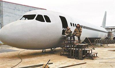 北青報(bào)記者在這則視頻中看到,在一個院子里,幾個工人圍繞著一架初具雛形的 " 空客 A320" 飛機(jī)忙碌,從視頻中看,這架 " 飛機(jī) " 外觀很壯觀。朱躍在視頻中介紹,自己從小就喜歡飛機(jī),因?yàn)橘I不起飛機(jī)就想造一架。這個飛機(jī)的機(jī)長 37.84 米、寬 36 米、高 12 米,是按照空客 A320 飛機(jī) 1:1 制作的,目前已經(jīng)用了 40 噸鐵,花費(fèi)已經(jīng)超過了 80 萬元。