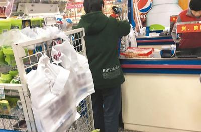 “現(xiàn)在很多消費者尤其是老年人,都會自備塑料袋或環(huán)保購物袋,人們的環(huán)保意識在逐漸提高!蔽挥谥袊窈娇傖t(yī)院附近的一家大型連鎖超市的收銀員表示,她每天要進行上萬筆交易,其中購買塑料袋的顧客比例為1/3。