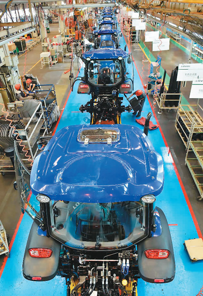 | 圖為位于山東濰坊的雷沃重工阿波斯拖拉機(jī)總裝車間的生產(chǎn)線。黨的十九大召開(kāi),明確以供給側(cè)結(jié)構(gòu)性改革為主線,推動(dòng)經(jīng)濟(jì)發(fā)展質(zhì)量變革、效率變革、動(dòng)力變革,提高全要素生產(chǎn)率。 |