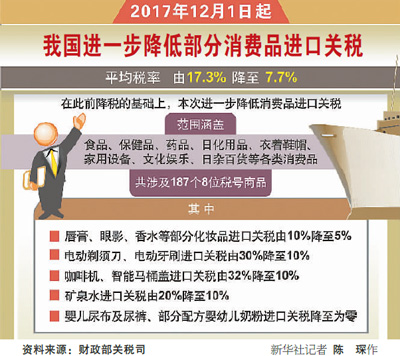 以2017年12月1日施行的稅收調(diào)整來說,財政部相關(guān)負責人指出,降低關(guān)稅為擴大消費品進口、降低消費品進口成本創(chuàng)造了有利的條件。降低消費品關(guān)稅釋放出擴大消費品進口的積極信號。