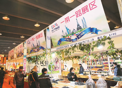 | 2017中國南通進口商品博覽會現(xiàn)場,消費者在“一帶一路”展區(qū)查看商品。 |