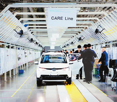 | 北汽新能源汽車(chē)總裝下線(xiàn)。 |