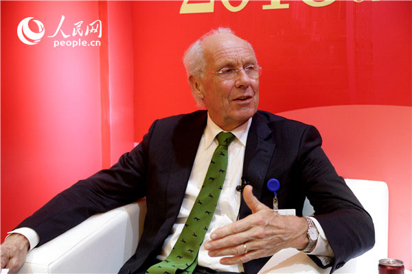 挪威商學(xué)院教授喬根·蘭德斯接受人民網(wǎng)專訪(人民網(wǎng) 王子侯攝)