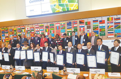 | 第五屆全球重要農(nóng)業(yè)文化遺產(chǎn)國(guó)際論壇上獲世界重要文化遺產(chǎn)授牌的各國(guó)代表合影。 |
