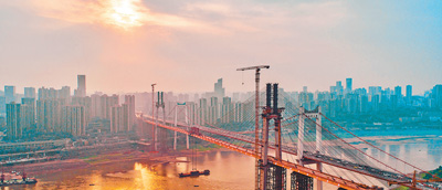 5月5日,世界最大跨度的自錨式懸索橋——重慶市鵝公巖軌道交通專用橋在長江上順利合龍。該橋全長1650米,其中主跨為600米的雙塔雙索面五跨連續(xù)鋼箱梁自錨式懸索,跨徑為同類型橋梁的世界之最?鐝降脑龃螅瑢(duì)橋梁設(shè)計(jì)能力、高強(qiáng)度厚鋼板材料性能及其焊接工藝、施工能力、施工裝備等方面提出了更高要求。
