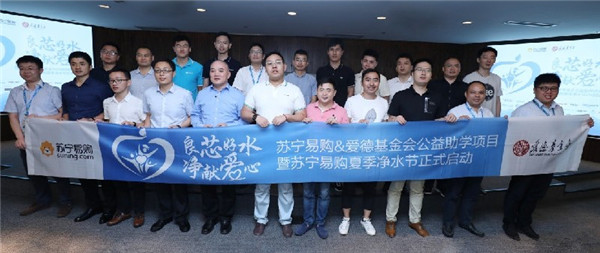 2018年7月10日,蘇寧易購(gòu)聯(lián)合愛(ài)德基金會(huì),在啟動(dòng)夏季凈水節(jié)的同時(shí),正式開(kāi)展“良芯好水 凈獻(xiàn)愛(ài)心”公益助學(xué)項(xiàng)目。7月13日至7月29日,蘇寧易購(gòu)全渠道指定凈水器每賣出1臺(tái),將捐贈(zèng)10元至愛(ài)德基金會(huì),用于資助孤兒大學(xué)生上學(xué)。