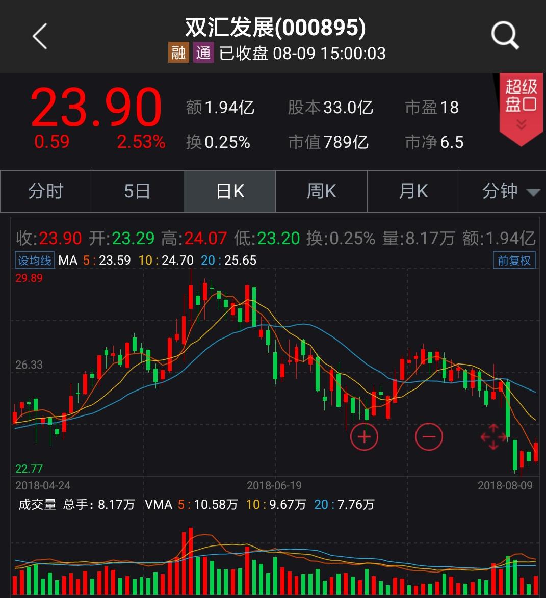 中新經(jīng)緯客戶端8月10日電 (吳亦涵)在遼寧省發(fā)生的豬瘟疫情被確診為非洲豬瘟之后,雙匯發(fā)展股價(jià)連日下跌,盡管8月9日,雙匯發(fā)展的股價(jià)在大盤帶動(dòng)下有所反彈(截至收盤上漲2.53%,報(bào)23.90元/股),但是其5日股價(jià)漲跌幅仍舊下跌8.08%。較其今年5月31日29.89元/股的高位相比,雙匯發(fā)展股價(jià)已經(jīng)下跌接近三成。