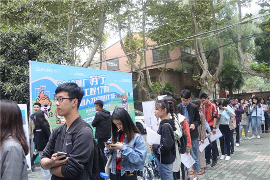 隨著2019年“1200工程”十七期校園招聘全球啟動發(fā)布會9月9日在蘇寧易購集團總部所在地南京落下帷幕,9月17日,蘇寧集團在西安交通大學興慶校區(qū)開展了“1200工程”十七期校園招聘會,此次招聘宣講會吸引了大量西安學子的關注,現(xiàn)場座無虛席,300個座位,到場500多位同學。這也從側面映射出蘇寧的“智慧零售”被越來越多的學子所認可,大家都想在蘇寧的大舞臺上一展風采。