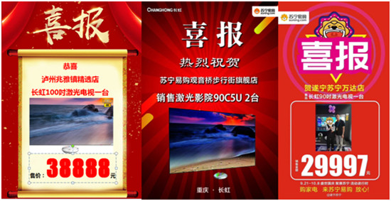 作為彩電第一銷售渠道的蘇寧,對這個十一依然持樂觀態(tài)度,線上推出“歡騰中國爽購十一”活動,50英寸4K人工智能電視拼購價僅需1599元;線下除爆款直降外,還在貴陽、成都、西安等地開啟高端彩電品鑒會。